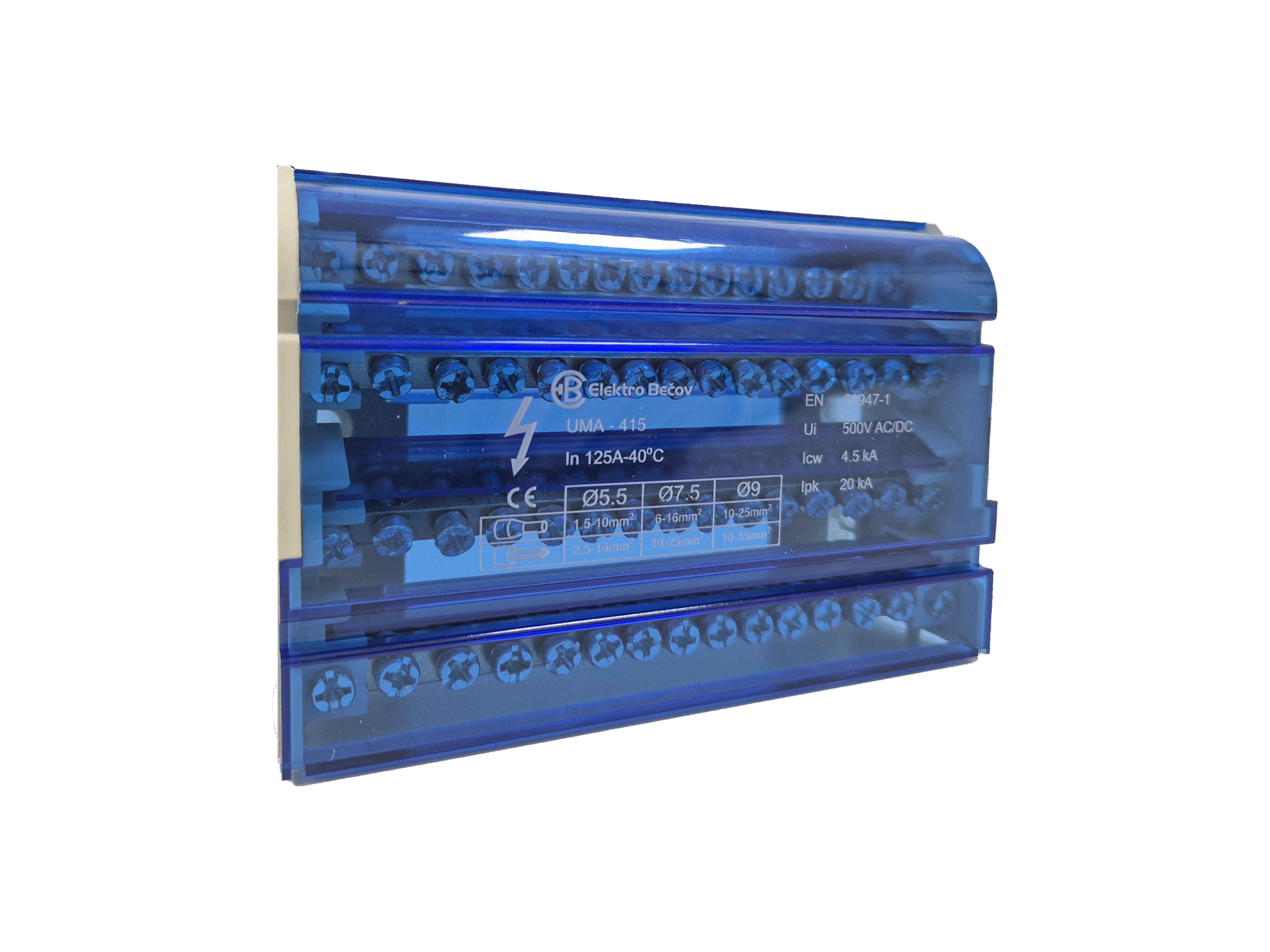Modułowy blok rozdzielczy UK DTB-A 415 przeznaczony do dystrybucji przewodów elektroenergetycznych.